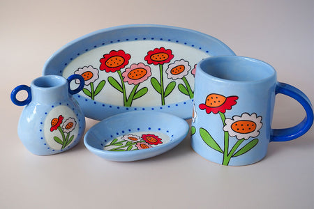 Adding a sense of modern nostalgia, the Garden Floral and Bluebell Series with their joyfully vibrant florals, are sure to brighten the space of any home. These pieces are designed to pair well within the collection. Each piece is individually free hand illustrated, making every vase an original artwork in itself.