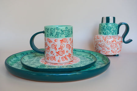 A nostalgic collection, defined by contrasting panels adorned with delicate, expressive rose motifs. Timeless, romantic and crafted to elevate everyday moments. This plate is the perfect accompaniment to high teas and some sweet treats! These pieces are designed to pair well within the Rosa collection. Each piece is individually free hand illustrated, making every design an original artwork in itself.